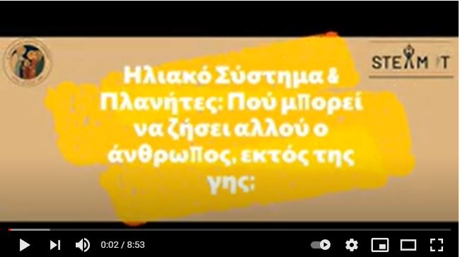 Κατά τη σχολική χρονιά 2020-2021, οι μαθητές της Στ΄τάξης συμμετείχαν στις δραστηριότητες που ετοιμάστηκαν στο πλαίσιο του προγράμματος STEAMIT από τη δασκάλα τους, Παρασκευή Σοφοκλέους και δυο εκπαιδευτικούς σε άλλα σχολεία. Η φιλοσοφία των δραστηριοτήτων στηριζόταν στη διερευνητική μάθηση και στη προσέγγιση steam. Συγκεκριμένα, τα παιδιά είχαν την ευκαιρία μέσα από δεδομένα που τους δόθηκαν να εντοπίσουν το πρόβλημα και να διατυπώσουν το ερευνητικό ερώτημα που θα διερευνούσαν. Δηλαδή, διαπίστωσαν ότι οι συνθήκες διαβίωσης στη γη γίνονται ολοένα και λιγότερο φιλικές προς τον άνθρωπο, και έτσι σκέφτηκαν να διερευνήσουν πού άλλου θα μπορούσαν να ζήσουν. Για αυτό παρατήρησαν, μελέτησαν, σύγκριναν, συνδύασαν, αξιολόγησαν πληροφορίες από εφαρμογές εικονικής πραγματικότητας, εφαρμογές σε οθόνες αφής, βίντεο και άρθρα σε ιστοσελίδες σχετικά με το Ηλιακό Σύστημα και συμπλήρωσαν σχετικά φύλλα εργασίας. Επίσης, επεξεργάστηκαν αριθμητικά δεδομένα συνδυάζοντας ταυτόχρονα διάφορες μαθηματικές έννοιες (αναλογίες, δεκαδικοί αριθμοί, πράξεις, σύγκριση αριθμών, γραφικές παραστάσεις). Με βάση αυτά που έμαθαν, κατέγραψαν σε σημεία τα βασικά, κατασκεύασαν το ηλιακό σύστημα και έγραψαν άρθρο όπου εξηγούν με επιχειρήματα πού άλλου μπορεί να ζήσει ο άνθρωπος σε περίπτωση που η γη γίνει μη κατοικήσιμη. Στο βίντεο γίνεται παρουσίαση του τρόπου εργασίας των μαθητών. Οι μαθητές δηλώνουν ότι έχουν μάθει πολλά μέσα από αυτή τη σειρά των δραστηριοτήτων και ότι το απόλαυσαν!!!