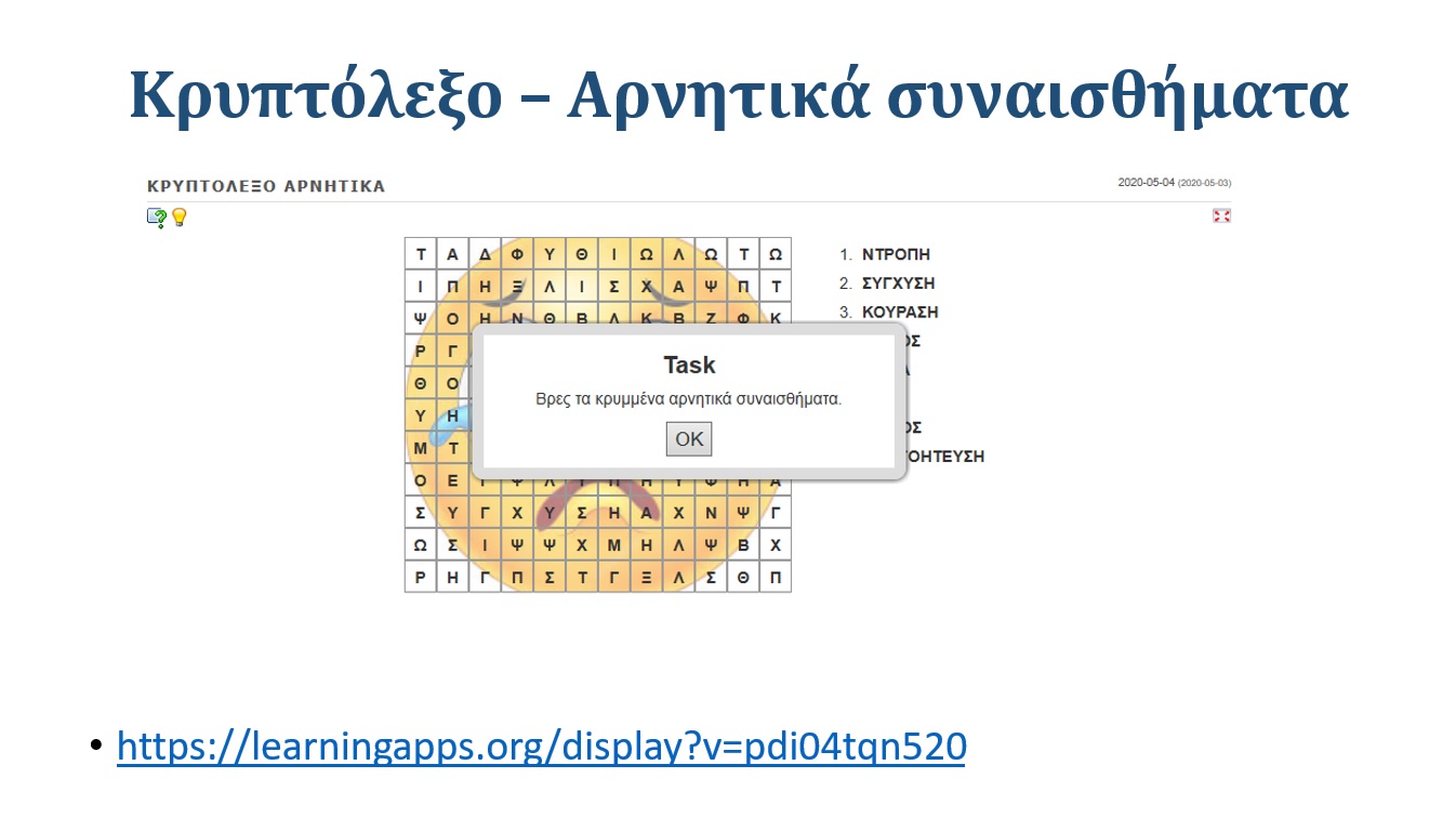 έφτιαξα τα πιο κάτω παιχνίδια για να αναγνωρίζουμε τα συναισθήματά μας.